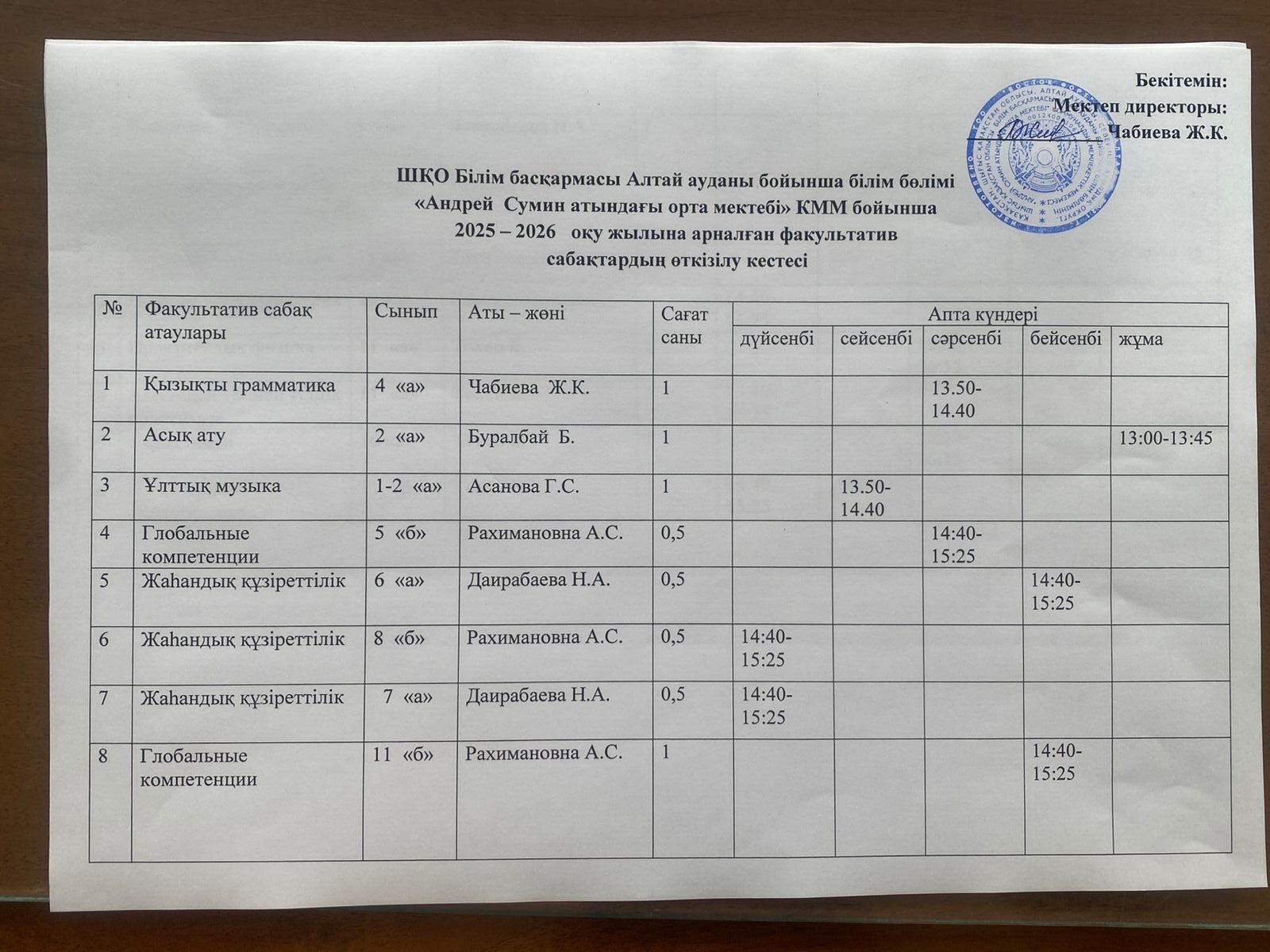 КГУ "Средняя школа имени Андрея Сумина" отдела образования по району Алтай УО ВКО