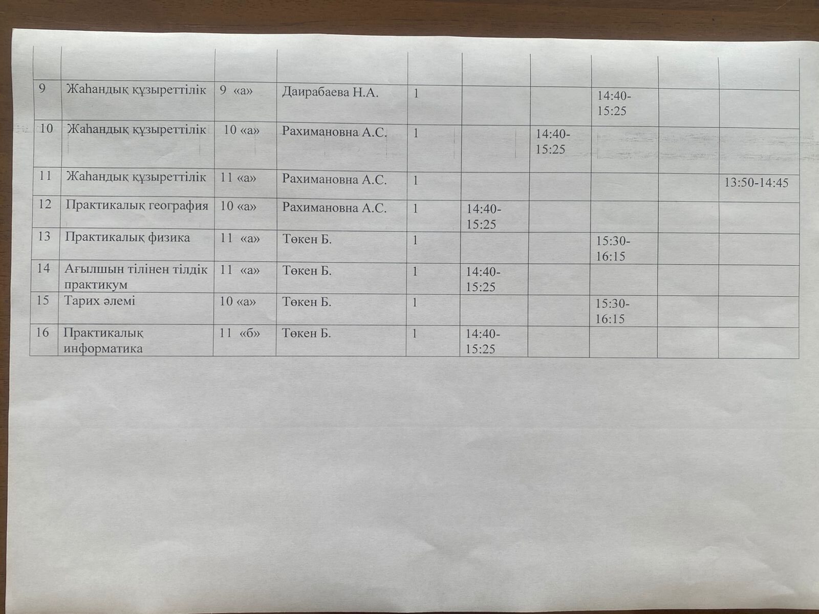 Расписание уроков